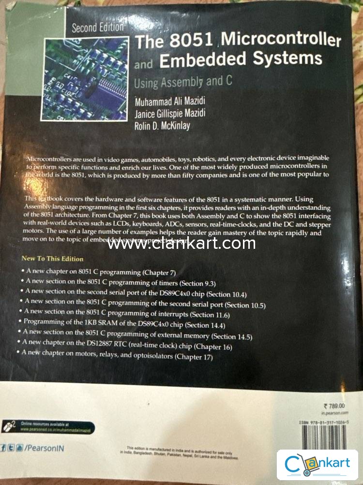 The 8051 Microcontroller and Embedded Systems: Using Assembly and C (Paperback) by Muhammad Ali Mazidi (Author) The 8051 Microcontroller and Embedded Systems Using Assembly and C, 2/e is a powerful book that focuses on the 8051 microcontroller. The readers of this book are provided with a detailed explanation of the software and hardware specifications of this microcontroller. This microcontroller is considered to be the most popular microprocessor, in terms of usage and production. Owing to its immense popularity, it is being produced by more than fifty companies. The content of this book has been categorized into seventeen chapters, along with eight appendices. The first six chapters of this book provide you with all that you need to know on the basic architecture of this microcontroller, using assembly languages. The chapters that follow show you just how this microcontroller interfaces with the necessary devices, using C and assembly languages. The 8051 microcontroller uses these languages to interact with several devices, which include LCDs, Keyboards, sensors and stepper motors. The second edition of this book is inclusive of several other features, which were not present in the first book. These include topics such as DS12887 real-time clock chip, C Programming and optoisolators. These changes have been made to ensure that the book is up-to-date. The second edition of The 8051 Microcontroller and Embedded Systems Using Assembly and C, 2/e has been published by Pearson, in the year 2008 and is available in paperback.Key Features:The book gives you updated information on various topics that pertain to the 8051 microcontroller.The author has included various new sections in many of the original chapters in this book.About the AuthorMuhammad Ali Mazidi is one of the authors of The 8051 Microcontroller And Embedded Systems Using Assembly And C, 2/e. He went to Tabriz University and has earned his Master's degree from Southern Methodist University, along with another Master's degree from the University of Texas