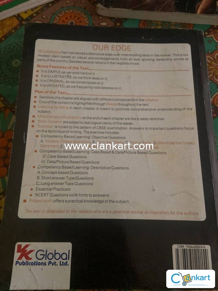 The CBSE board has recently shown a bent towards analysis and interpretation based questions under the label of ‘competency- based questions’. This book is prepared according to revised syllabus and new paper pattern. ‘The Same but Different’: Revised and restructured on positive feedback, the Statistics for Economics Textbook is all geared up to provide its readers step by step comprehension of the subject matter. Novelties of the text include: 1. NEW TYPOLOGY OF QUESTIONS: (Image/Data interpretation, defend and refute type questions etc.) have been incorporated in each chapter. 2. ‘BRAIN TEASER’ BLOCKS: Implication based questions related to current happenings around have been incorporated in each chapter. These help gauge the inferences the students are able to draw from the text and how easily they are able to relate economic theory to the ground level realities. 3. OTHERS: HOTS & Focus Zones DAV Board Question Paper (Solved) Sample Paper By “VK Global Study Group”[A specimen paper woven along the same structure and blueprint as suggested in the CBSE released Sample Question Paper-2023.]